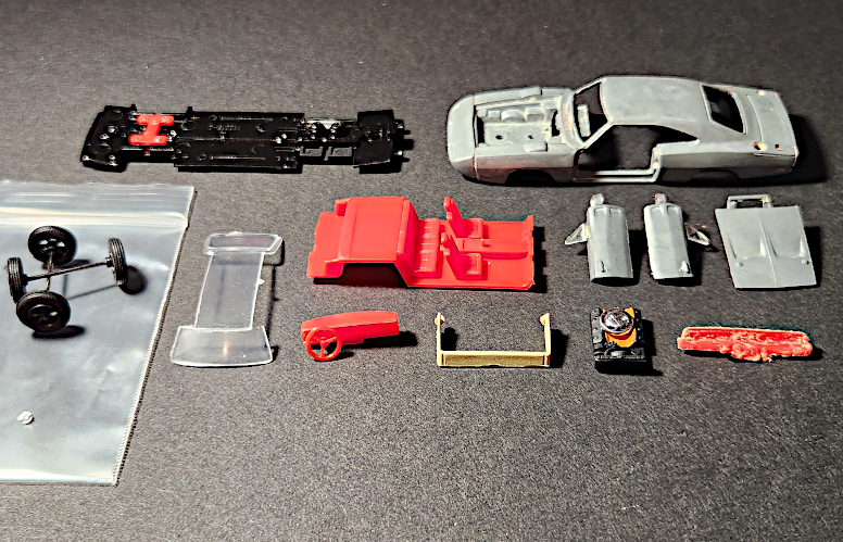The first step in the build was to break the car down. That was relatively easy to do, given the M2M diecasts are put together with screws and not rivets. There were some plastic parts on the model. The pins that attach the parts to the car were melted to the inside of the metal body casting. So, it was pretty easy to use a chisel to scrape away the melted plastic and release the parts.