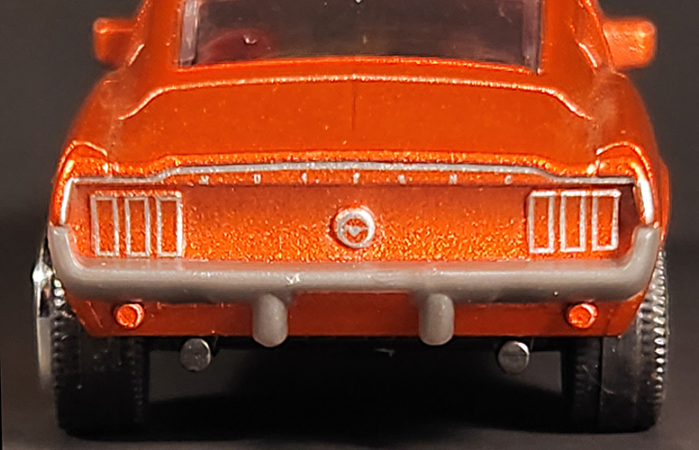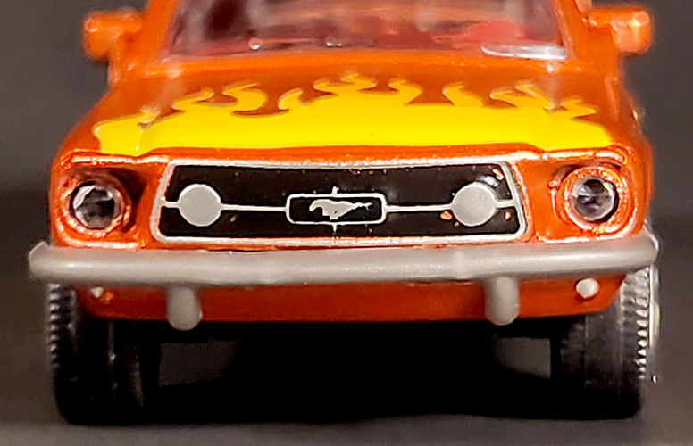 I’d like to find one more Fastback to add to my collection. If I can find a second one, I’d like to drill out the posts on this one and do a custom paint job on the interior. I’d also like to add some panel lining to the vehicle as well as repaint the chipped area of the grille. The model also has mirrors, but the actual mirror has orange flake paint. I’d like to add some silver there as well.